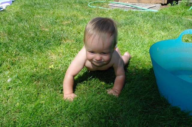 Parker's getting better with the water, but you'll notice that he's not actually IN it, just near.