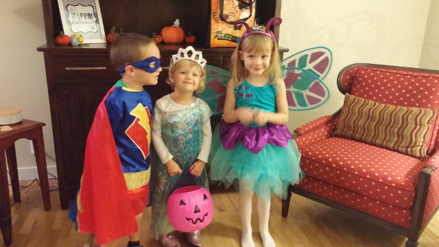 Mid-way through the day, Cecily changed her clothes and decided she wanted to wear this for trick-or-treating, but informed us that "You can still call me Elsa"