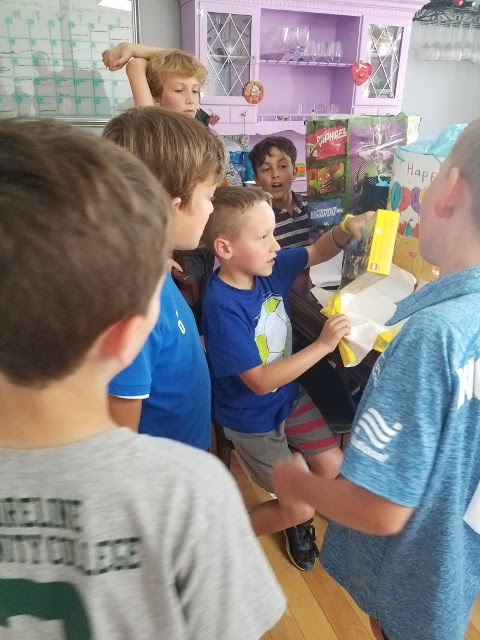 Parker wanted a yard sports party, so we set-up the corn hole, King Kub, and Molokky games and released the boys on the backyard.